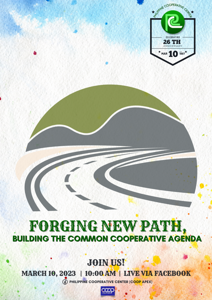 Greetings and best wishes to all our fellow cooperators, partner organizations, and movement allies. The Philippine Cooperative Center invites everyone to its 26th Anniversary celebration with the theme “Forging a New Path: Building a Common Cooperative Agenda” on March 10, 2023, through our Facebook live stream starting at 10:00 am.